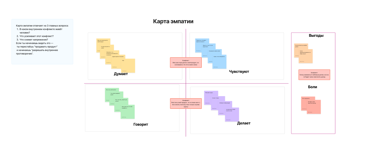 - Карта эмпатии — и карта выявления конфликтов.